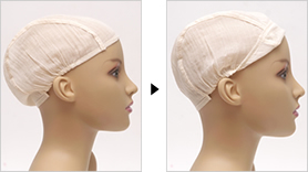 アンダーキャップを被ることにより医療用かつらがずれにくくなります。